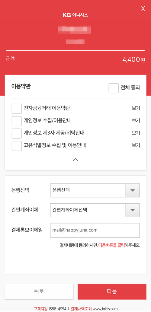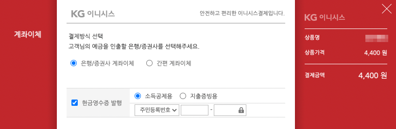 inicis 결제창에서 실시간계좌이체, 가상계좌 결제 과정에서 현금영수증 UI 를 제어하는 방법입니다