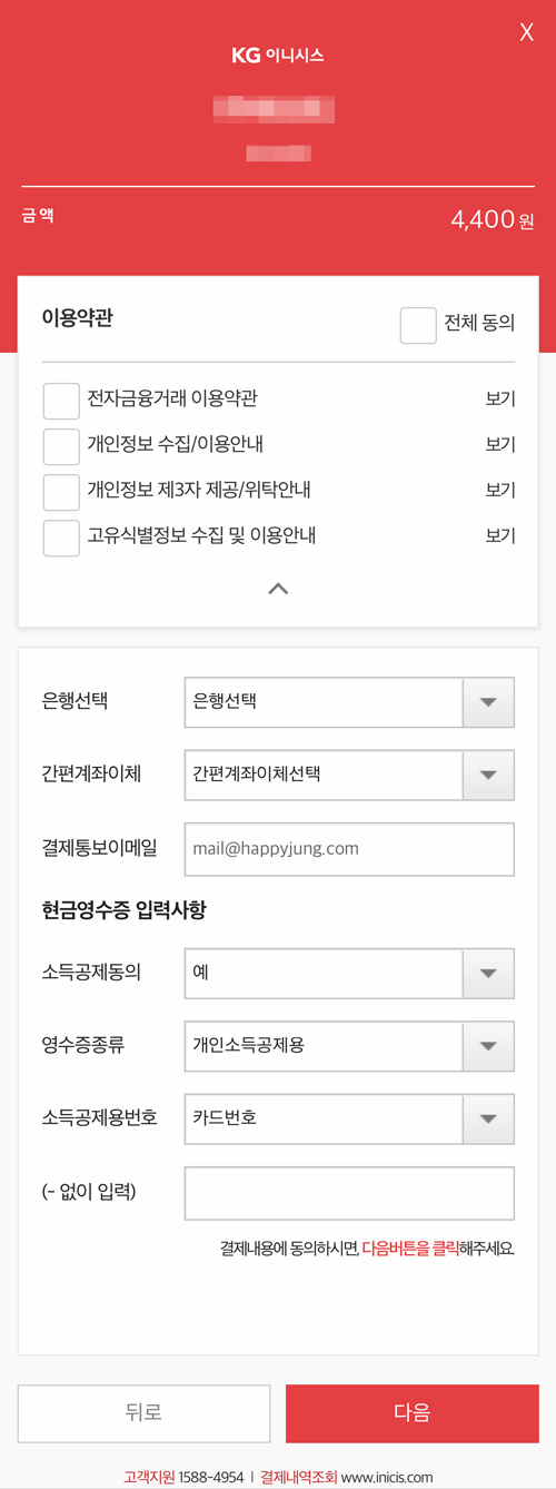 전자결제 [이니시스] 현금영수증 UI 제어하기