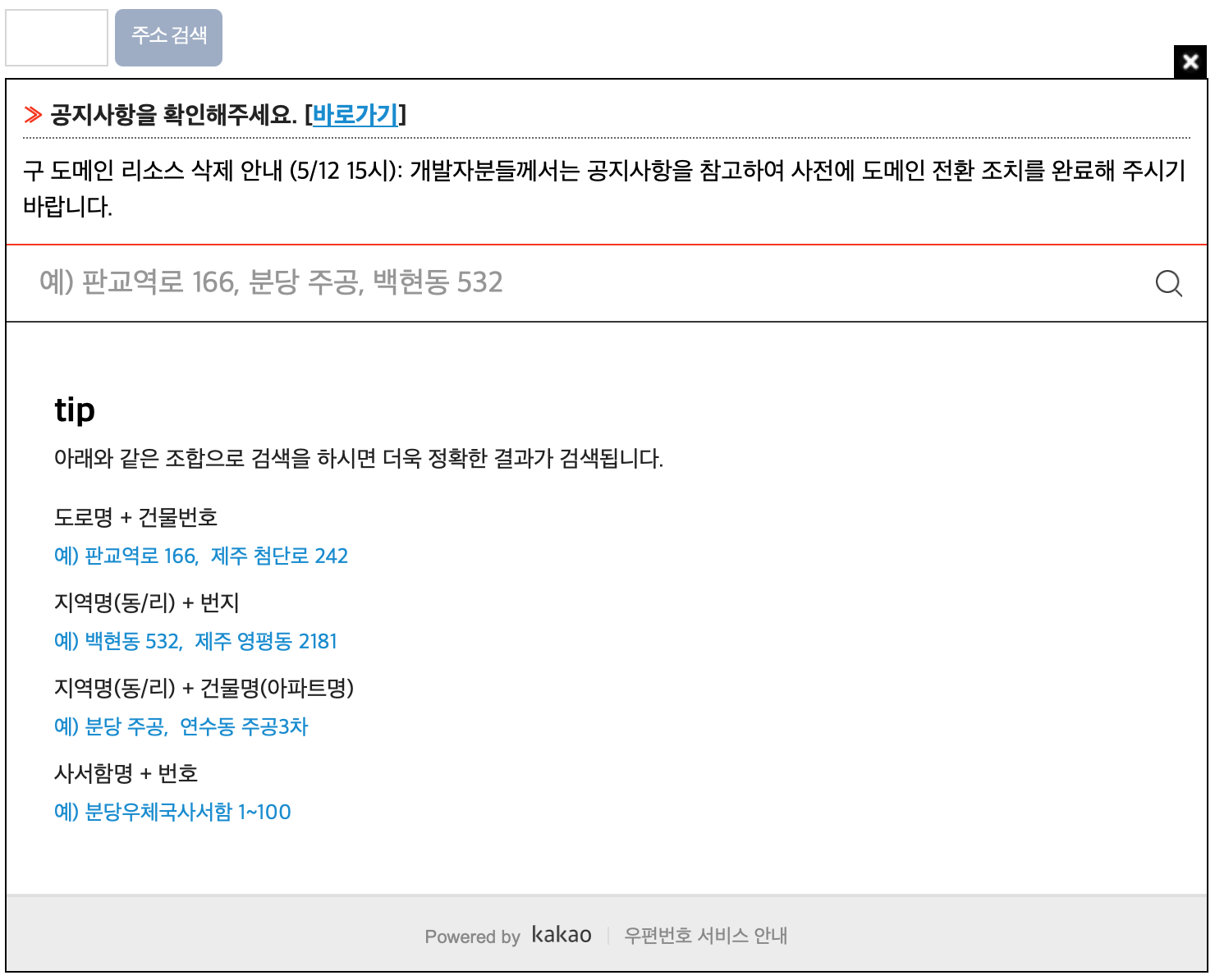 } else { //http 통신일때 daum 주소 js